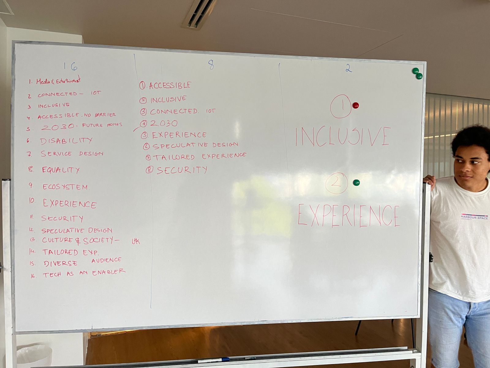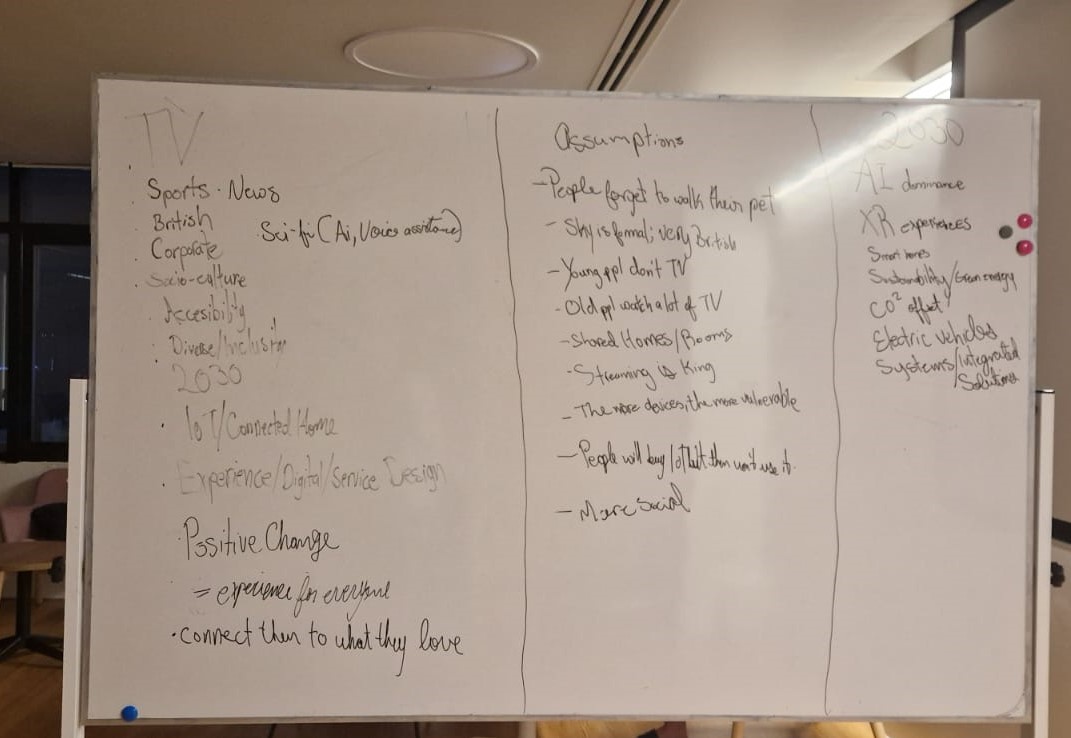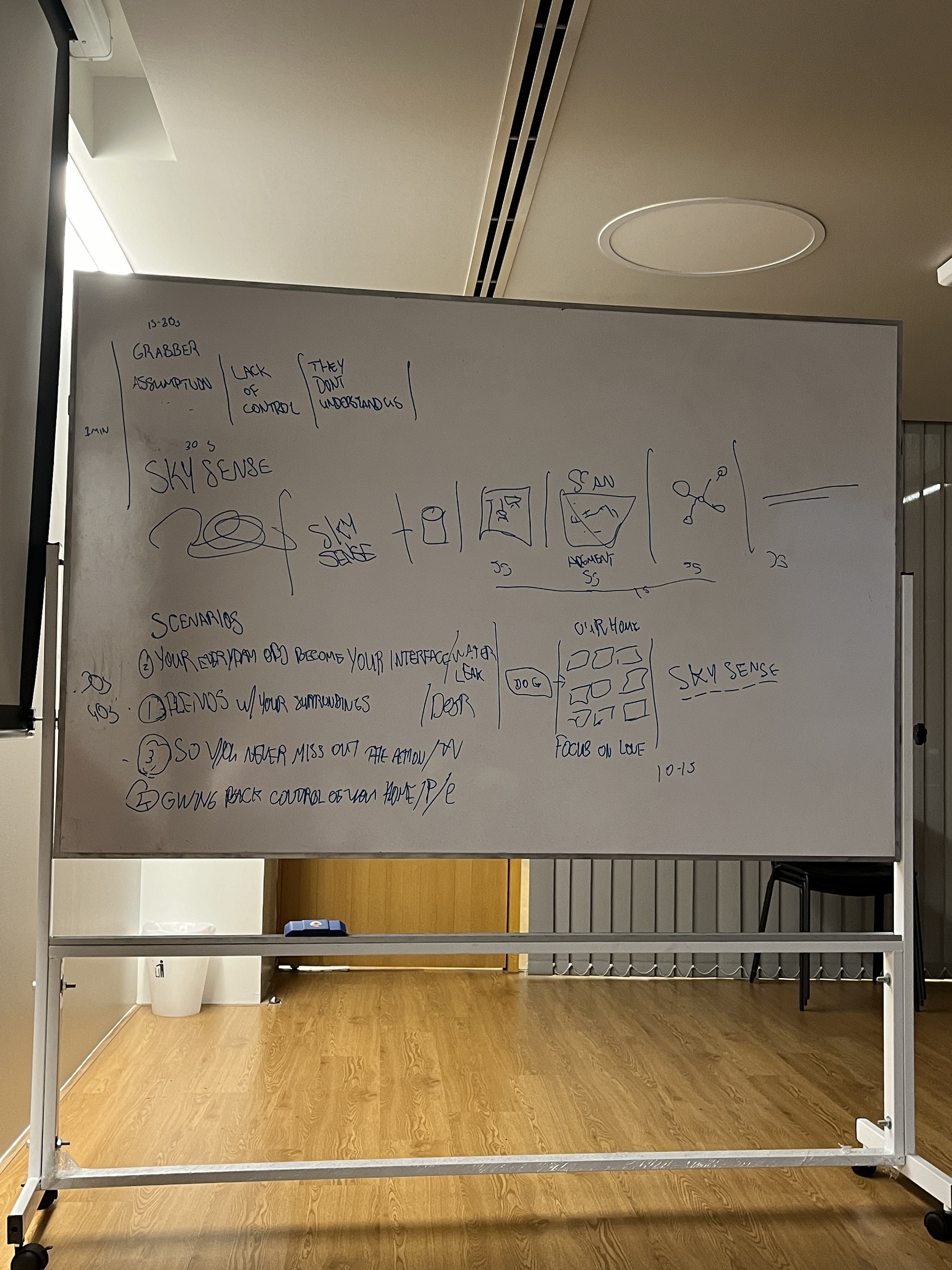 The ask was to design a smart home product for Sky consumers, focusing on speculative, experience, and/or service design. The product needed to be inclusive, accommodating people with disabilities, and ensuring accessibility. Our target was a diverse audience, aiming to enhance users' connections to their passions. The design had to be futuristic, considering technological advancements anticipated by 2030.