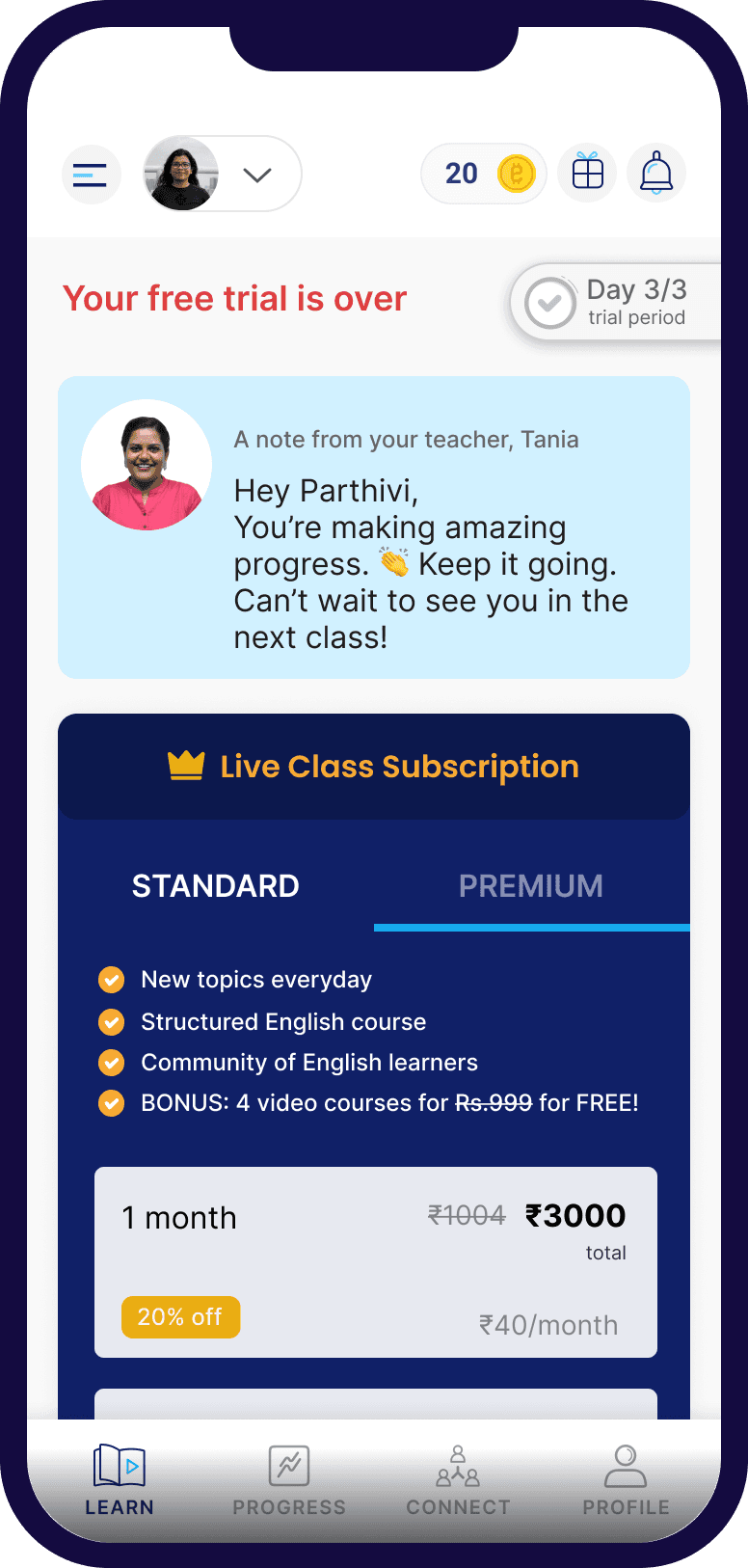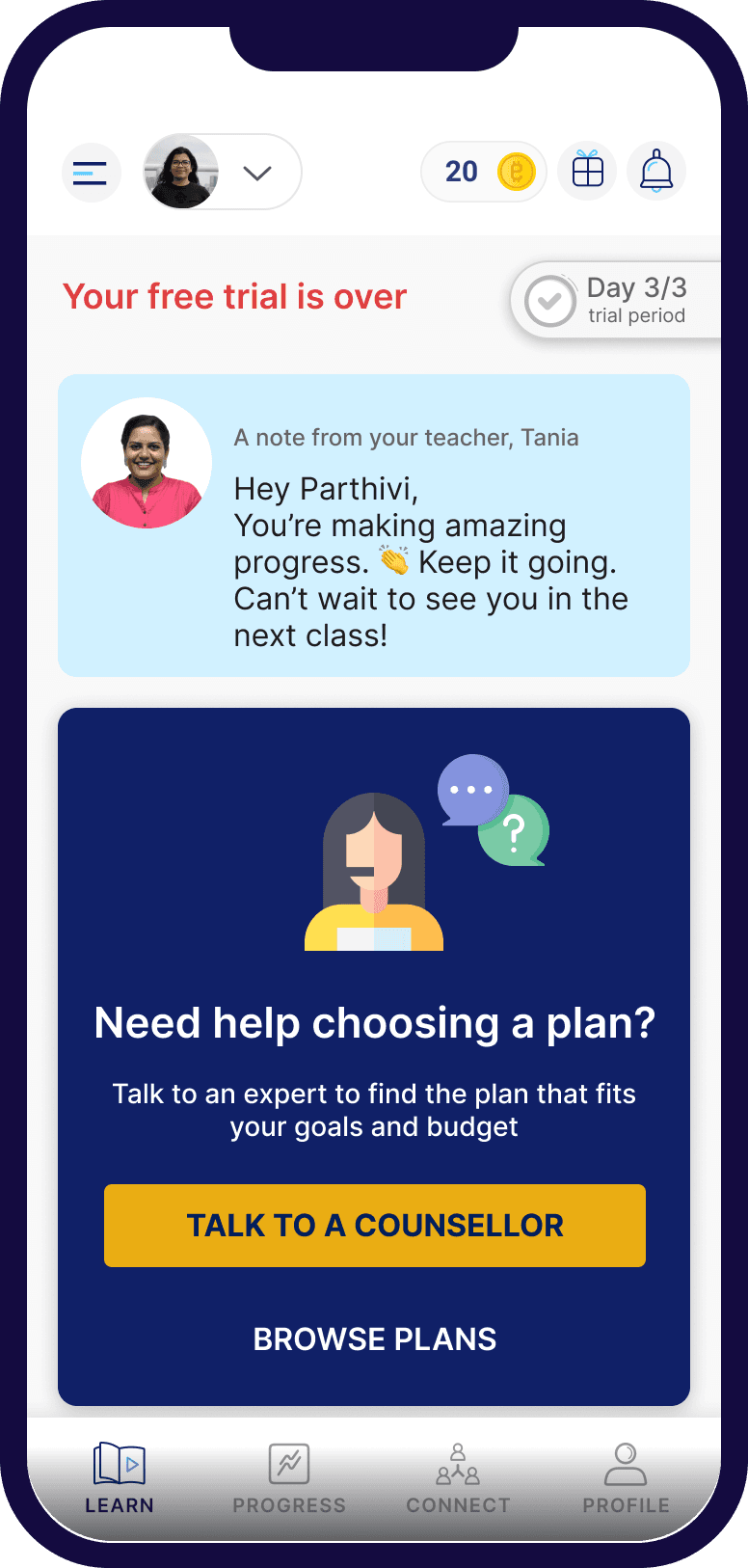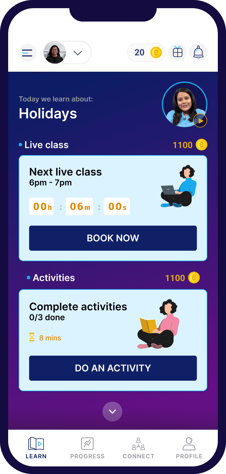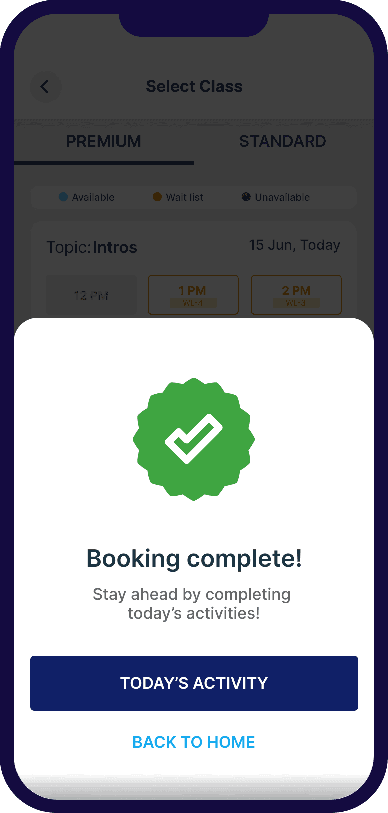 After the live class, if users haven't completed their daily activities, we prompt them to do so, reinforcing learning and building consistency.