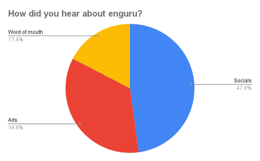 Enguru is a mobile-first English learning platform based in India. The platform offers live interactive classes, self-paced lessons, and gamified learning activities to help people improve their fluency and confidence in English. As of August 2022, Enguru had over 16 million downloads across India.