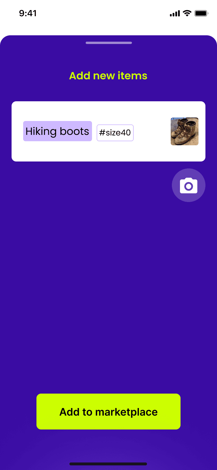 He begins a new item listing and adds the relevant name, tags and an image for the shoes.