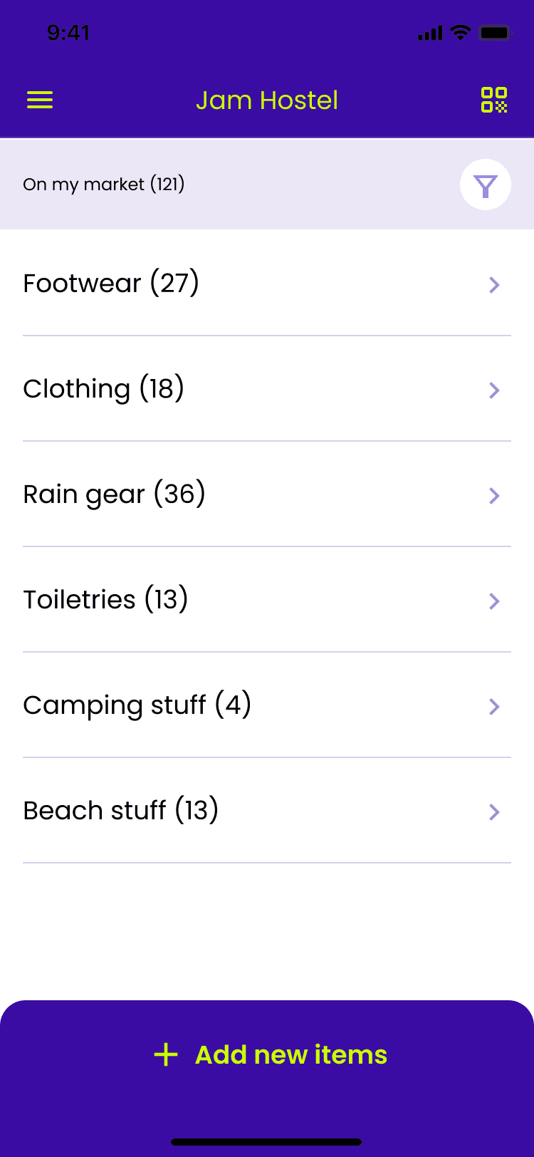 Marketplace toggle between hostel view and item view