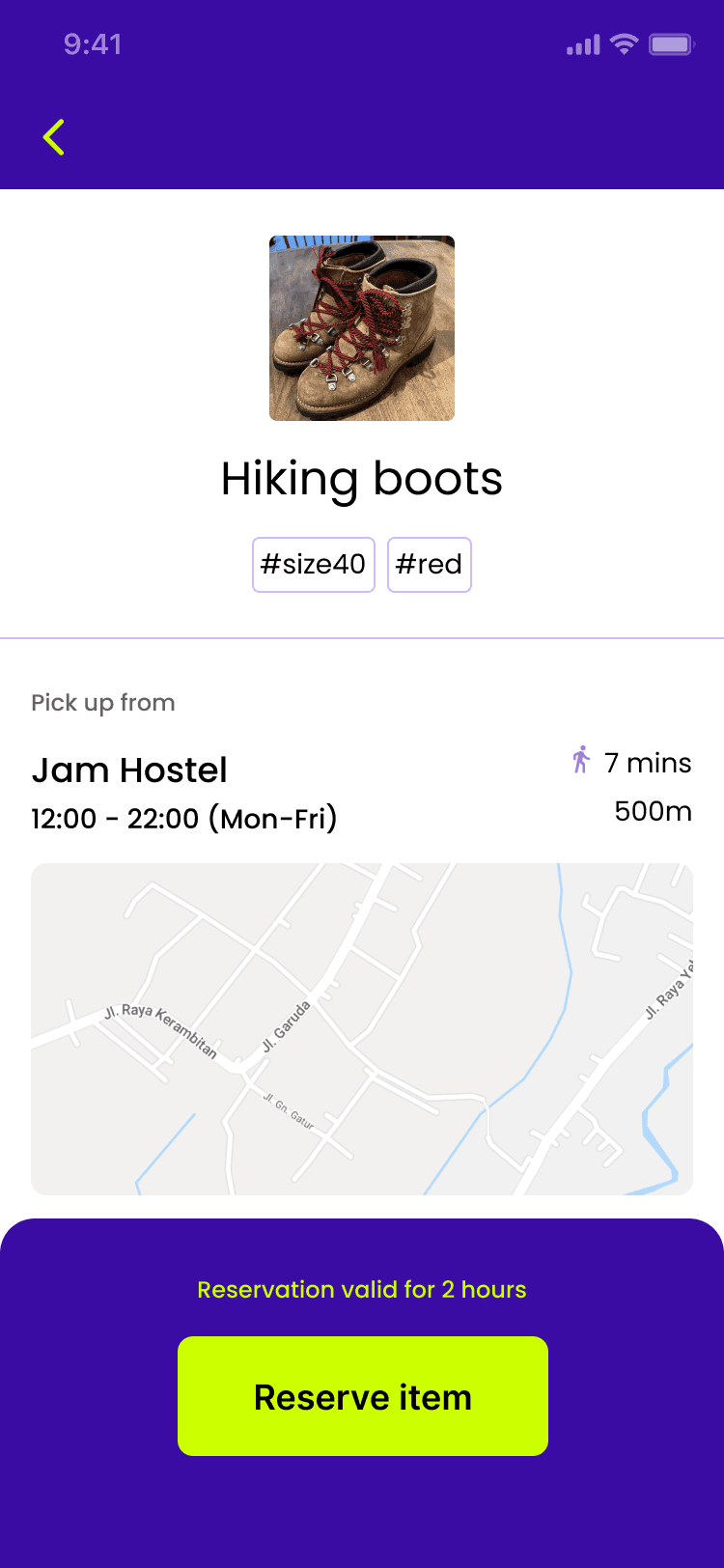Reservation valid for 2 hoursItem reservation notification on Hostel App
